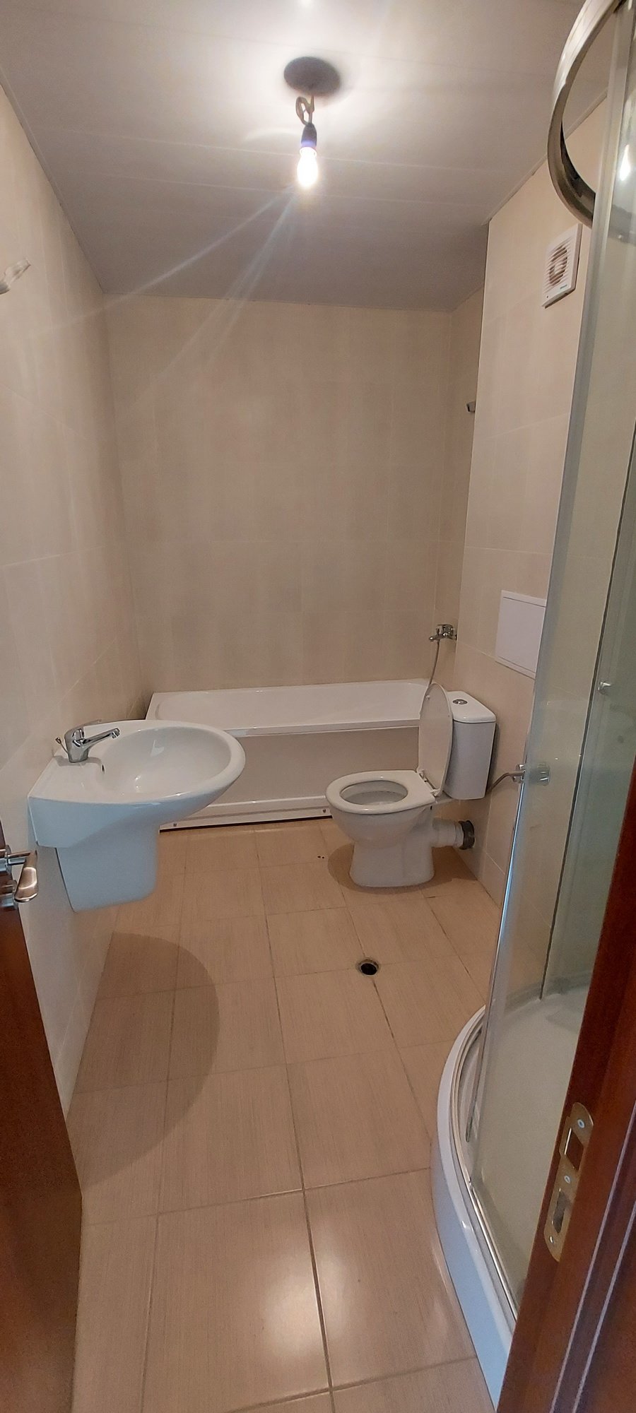 Апартаментите се продават с поставен ламинат , стените са боядисани в бял цвят , навсякъде са поставени контакти. Напълно изградена баня с фаянс и теракот мивка, огледало, душ кабина и санитарен възел .