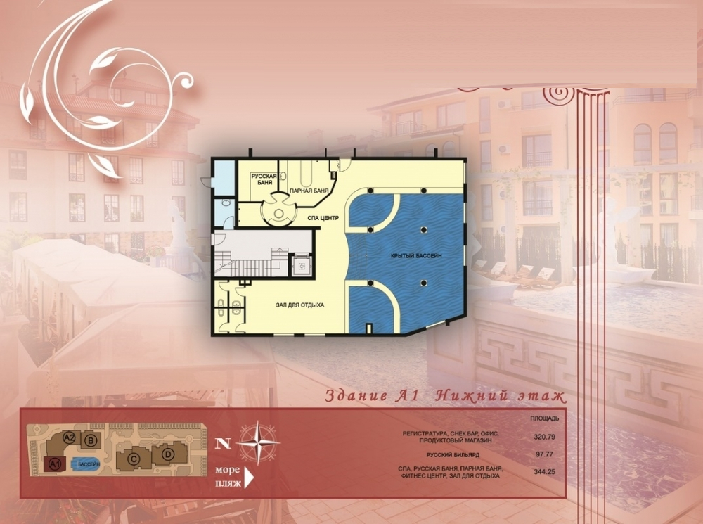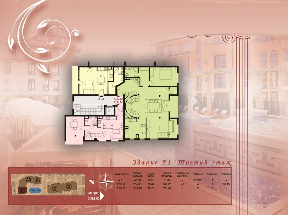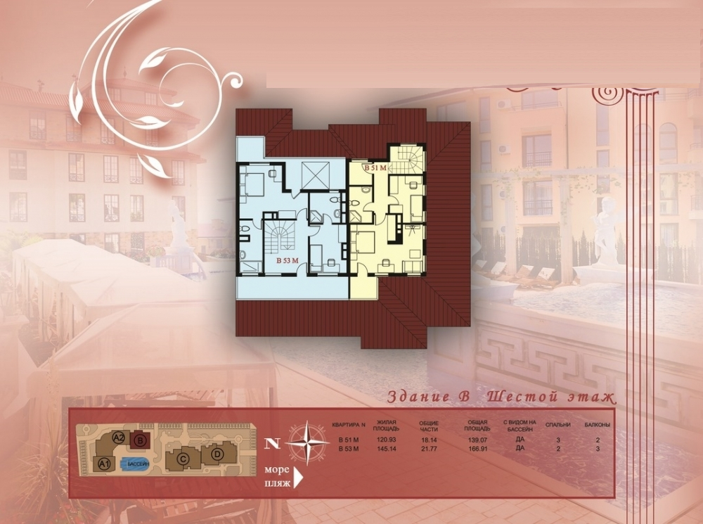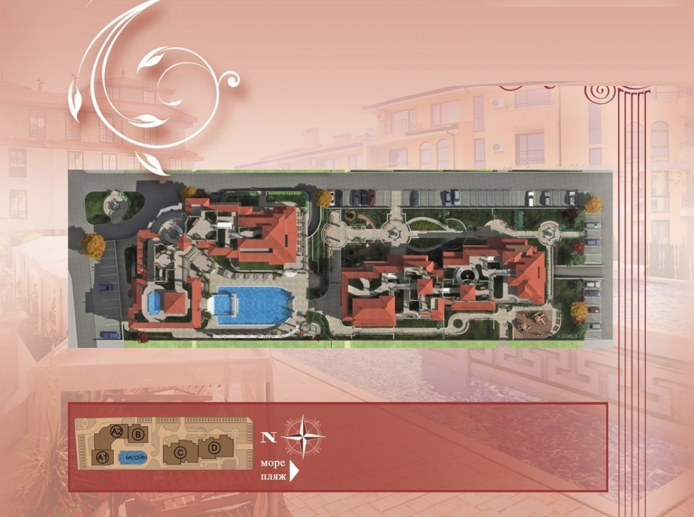 Комплексът се намира в Свети Влас като има самостоятелна инфраструктура и е проектиран в 5 секции в 2сгради, всяка от които е с отделен вход и асансьор. Комплексът разполага и с външен басейн, шезлонги и чадъри около басейна, детска площадка, подземен паркинг и места за паркиране на открито, охрана през цялата година.