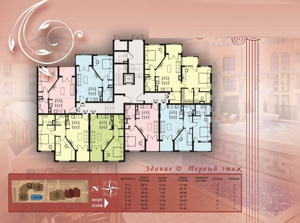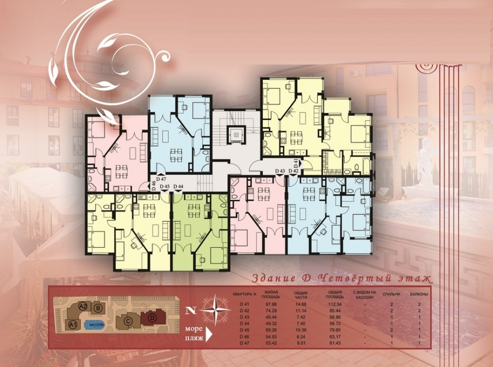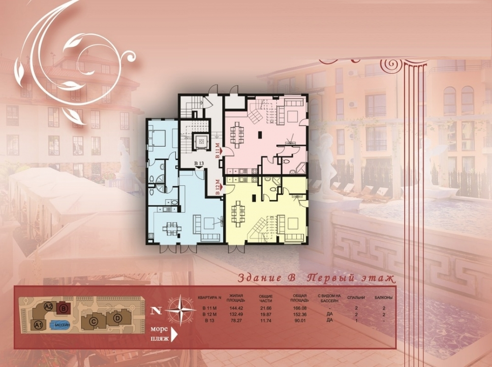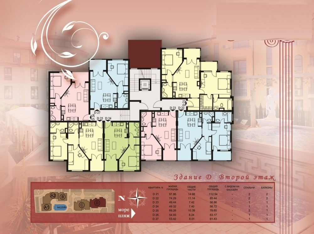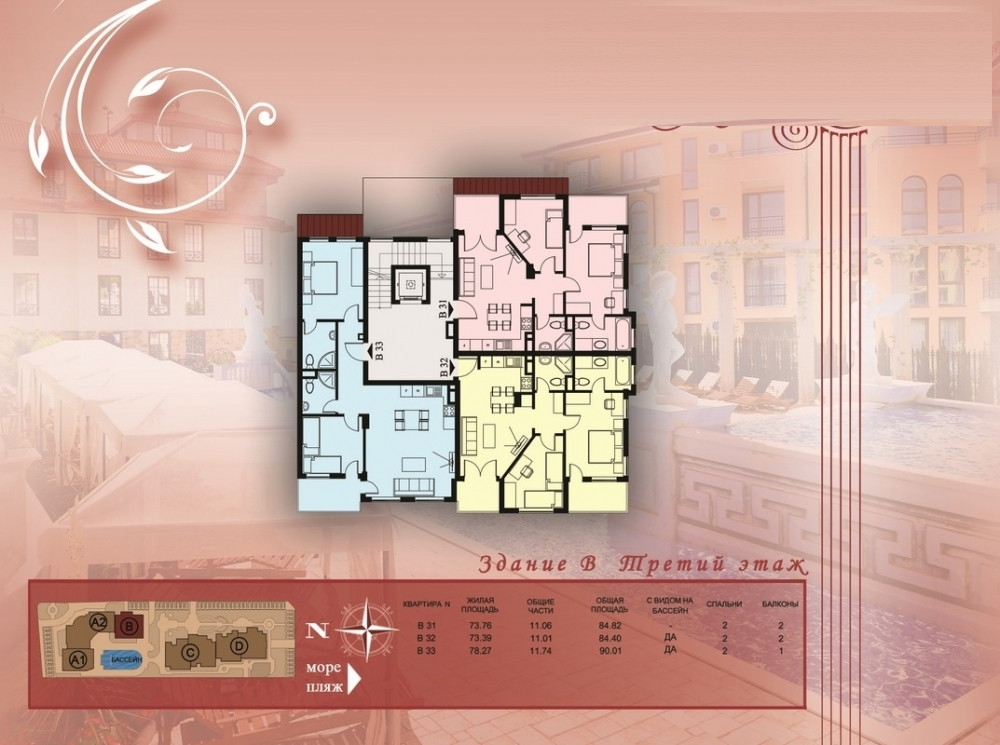 Комплексът се намира в Свети Влас като има самостоятелна инфраструктура и е проектиран в 5 секции в 2сгради, всяка от които е с отделен вход и асансьор. Комплексът разполага и с външен басейн, шезлонги и чадъри около басейна, детска площадка, подземен паркинг и места за паркиране на открито, охрана през цялата година.