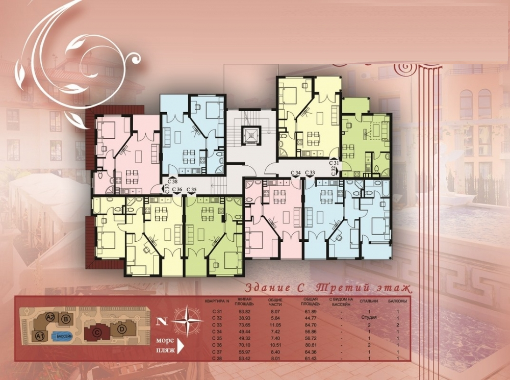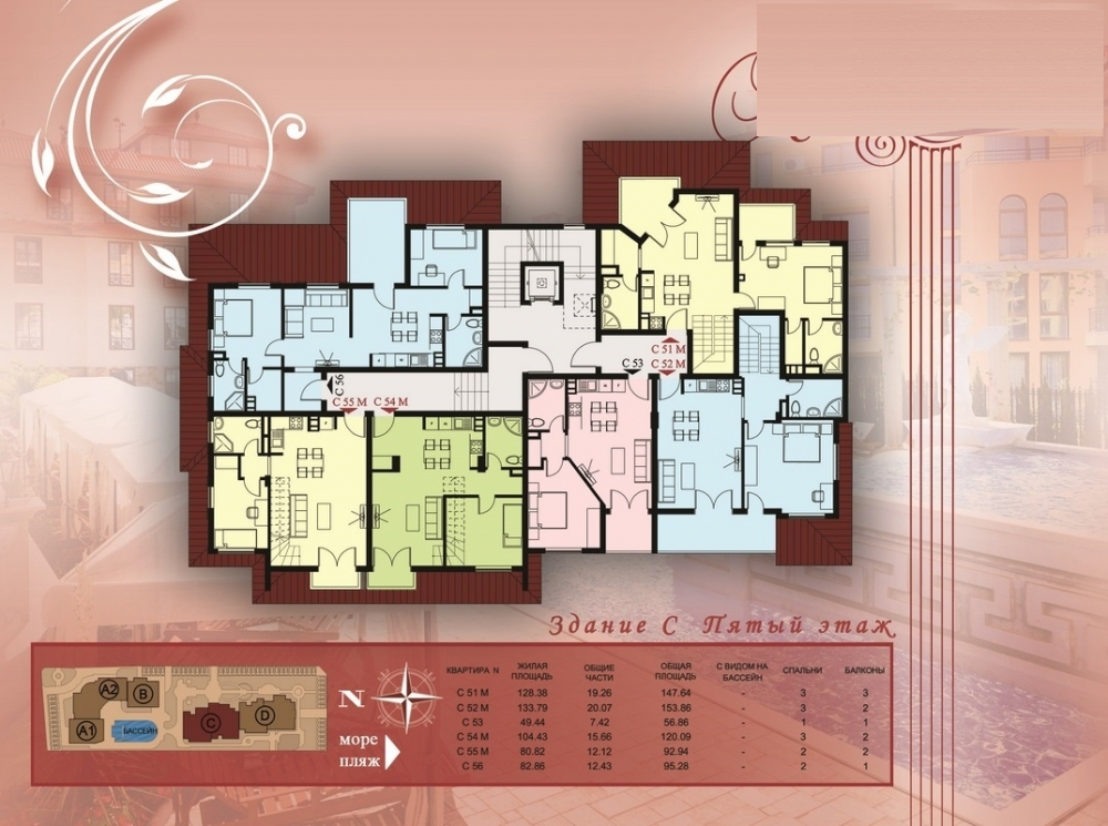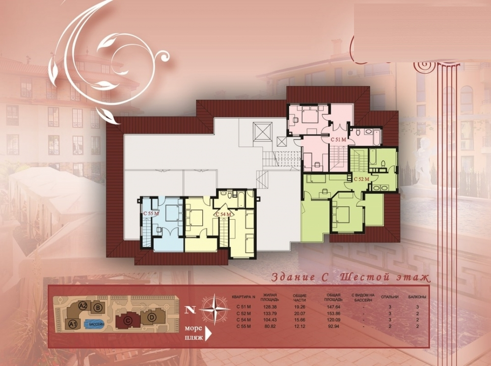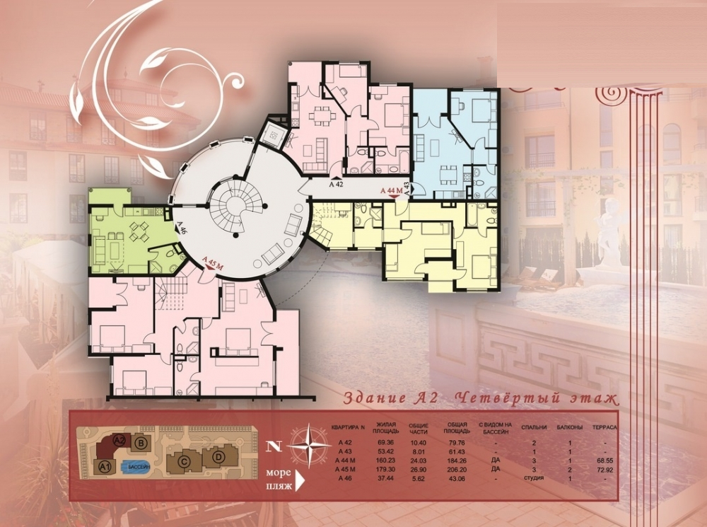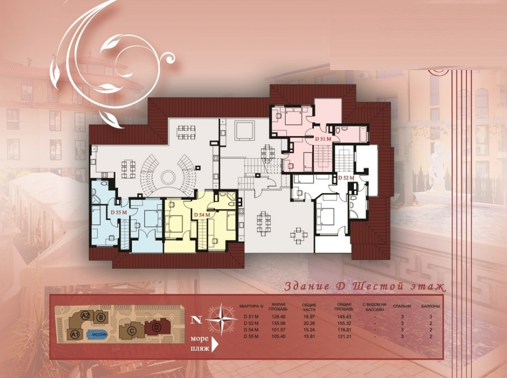 • просторни пентхауси (с 2, 3 и 4 спални, с площ от 100 – 280 кв.м).