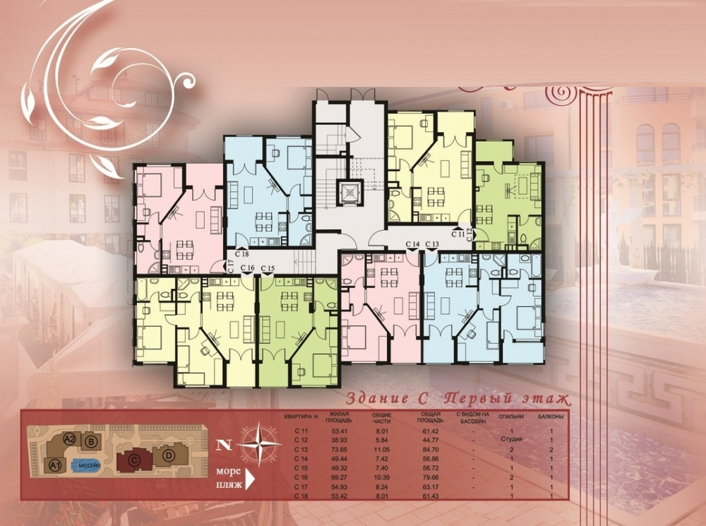 Комплексът разполага с апартаменти с студия , едностайни двустайни и тристайни апартаменти както и, пентхауси с мансардни и просторни тераси с красива гледка, както и къщи от типа "таунхаус":