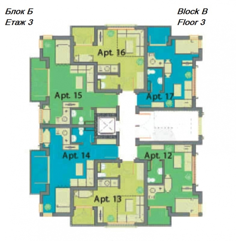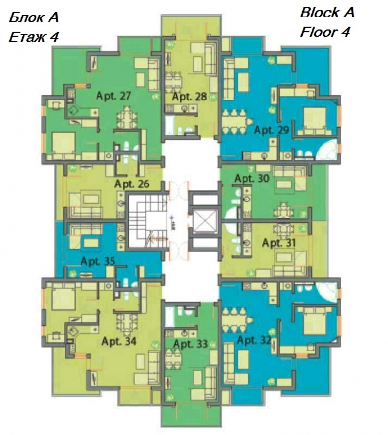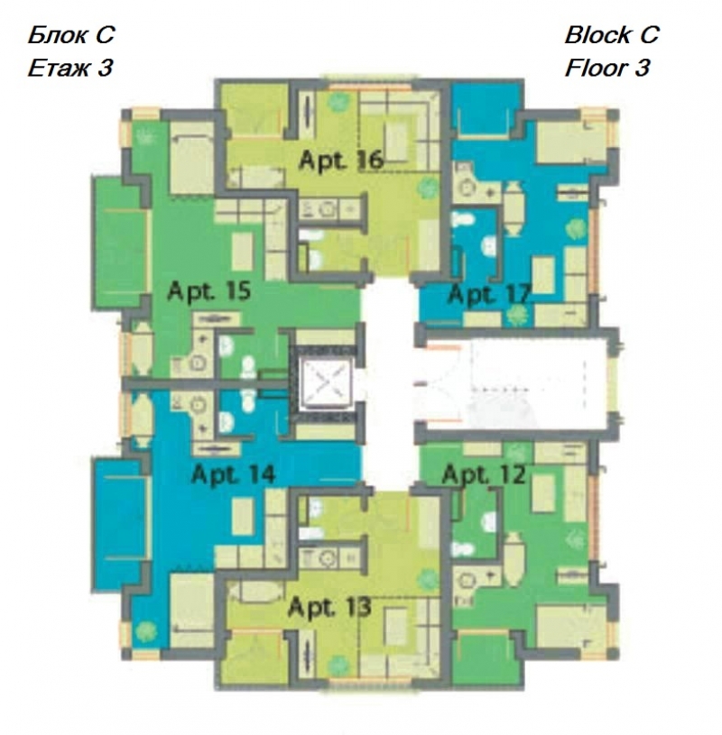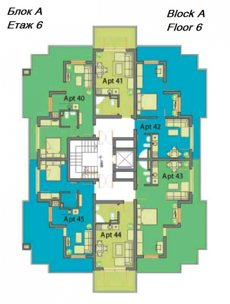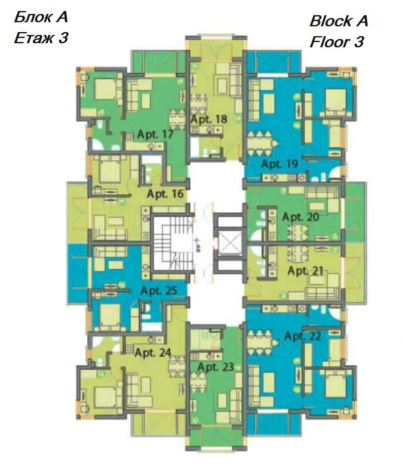 Всяка от трите сгради е оборудвана с асансьор за вашето удобство, като рецепцията се намира в най-голямата от тях, сграда А. Сгради Б и С предоставят аналогичен комфорт и функционалност, създавайки привлекателна общност за всички наши жители.