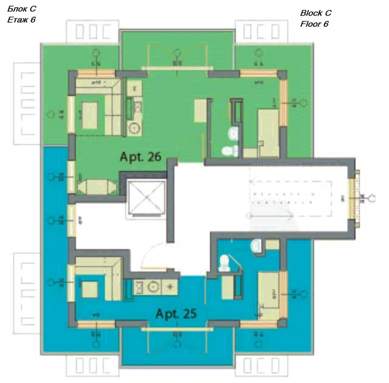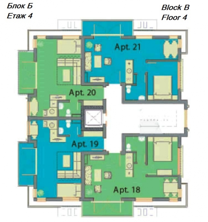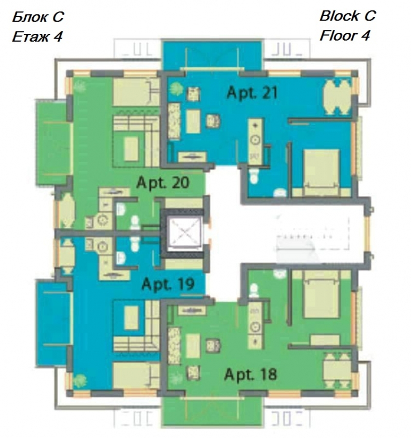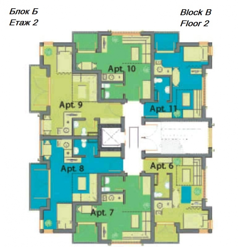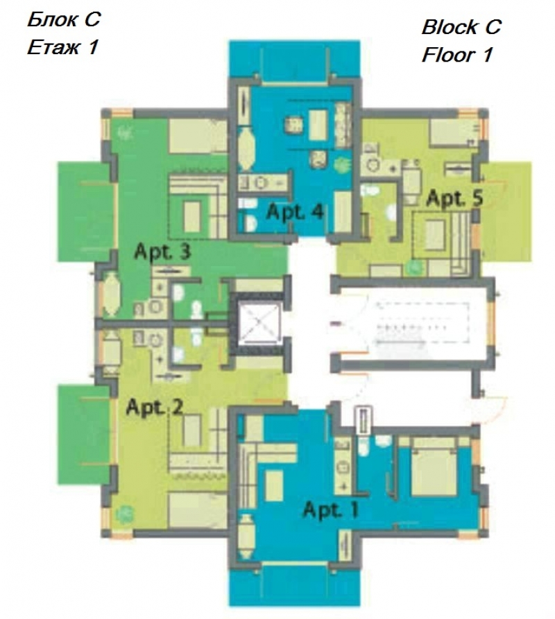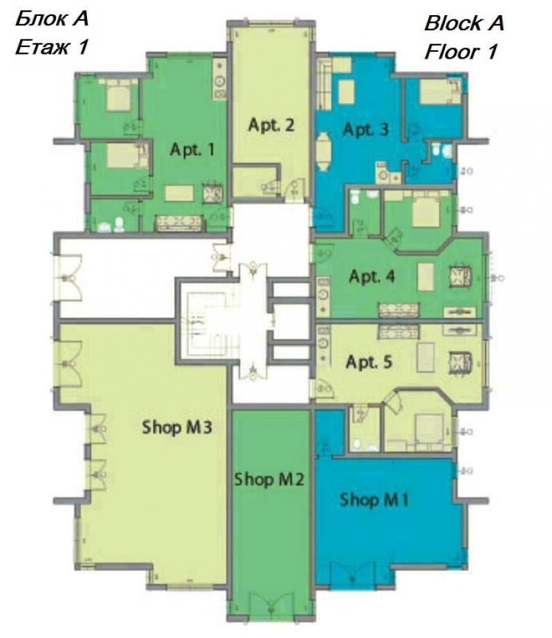Всяка от трите сгради е оборудвана с асансьор за вашето удобство, като рецепцията се намира в най-голямата от тях, сграда А. Сгради Б и С предоставят аналогичен комфорт и функционалност, създавайки привлекателна общност за всички наши жители.