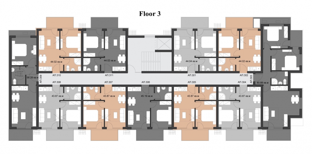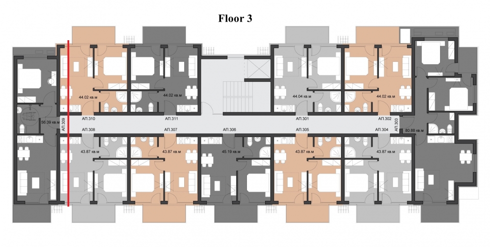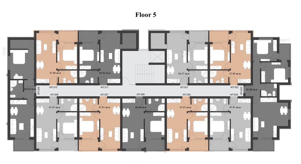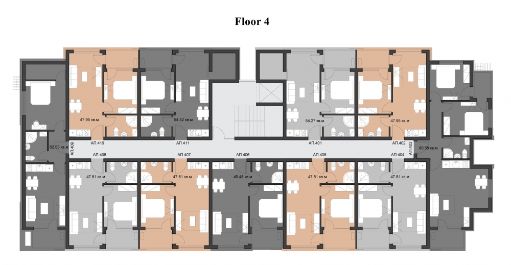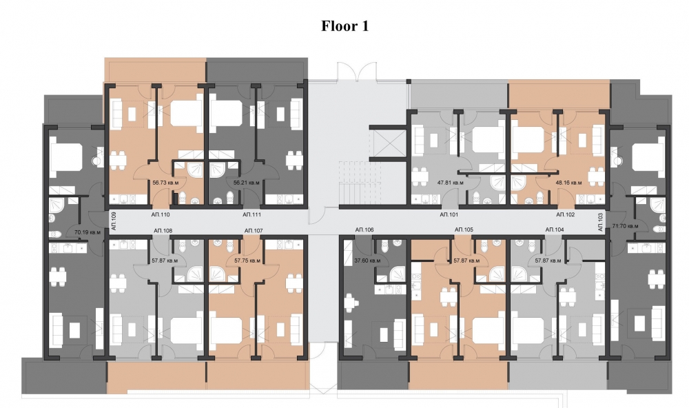 Комплекса се състои само от 48 апартамента: 40 апартамента с една спалня и 8 тристайни апартамента. Удобни разпределения на апартаменти ще задоволят и най-претенциозните и взискателните купувачи, а слава за интериора на апартамента е пред етапи на строителството. Най-хубавото в комплекса казват самите наематели! Имате всеки ще има възможност да говоря с тях!