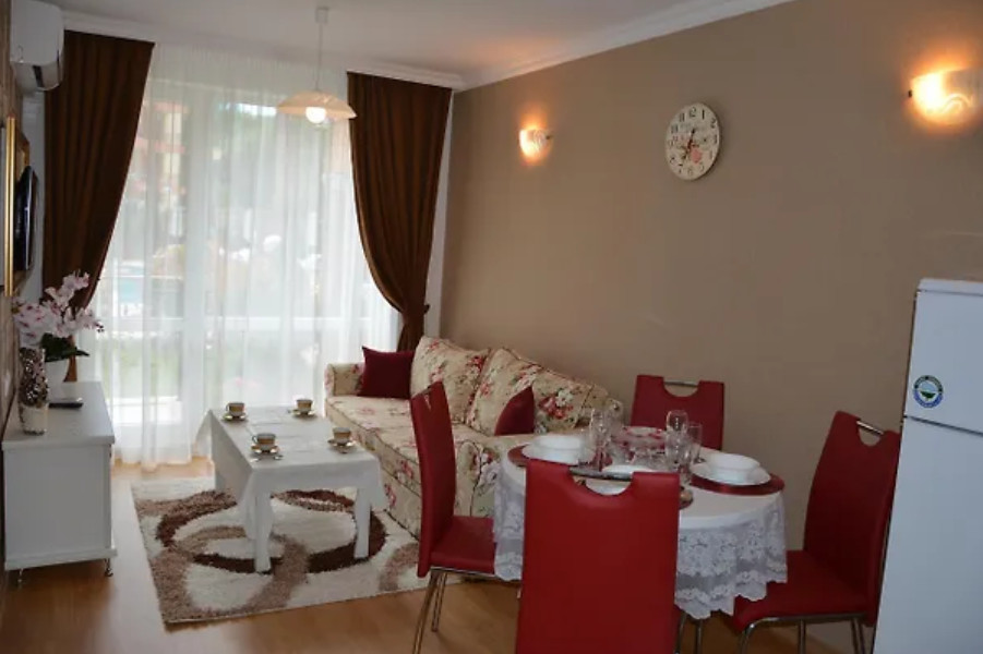 Комплексът се намира слънчев бряг само на 400 метра от плажната ивица. Построени са уникални апартаментни , елегантно съчетава с елементи на античното строителство уют и удобство. В близост до комплекса магазин за хранителни стоки хипермаркет, поликлиника, автобусна спирка ,ресторанти и други развлекателни заведения.