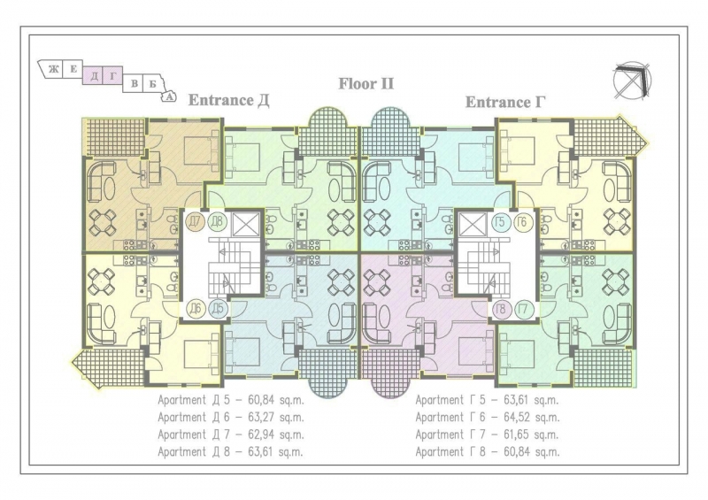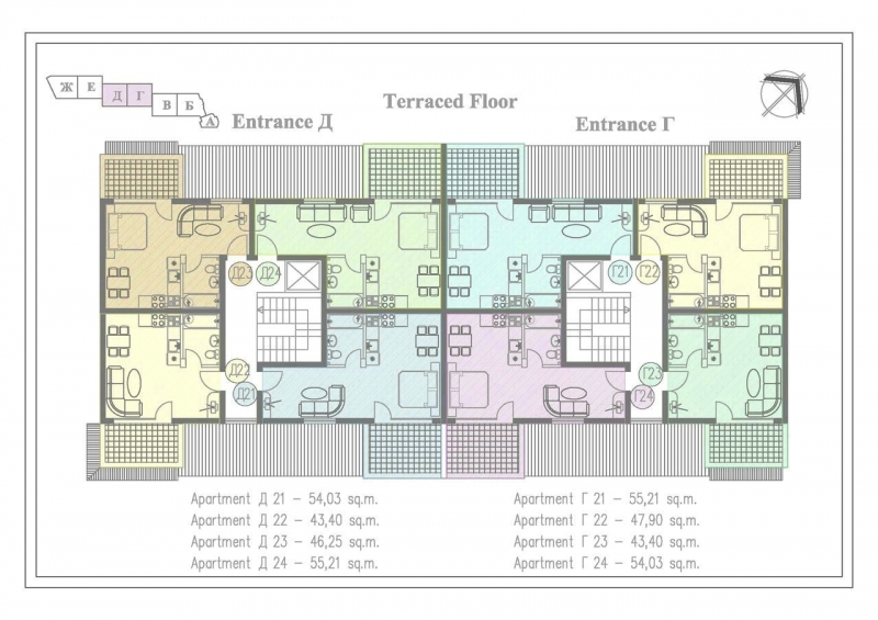 В комплекса предлагаме луксозни едностайни и двустайни апартаменти, всеки със собствена тераса, където можете да се насладите на уникалната атмосфера и прекрасния изглед. Всички жилища се предлагат в завършен вид готови за вашето незабавно настаняване.