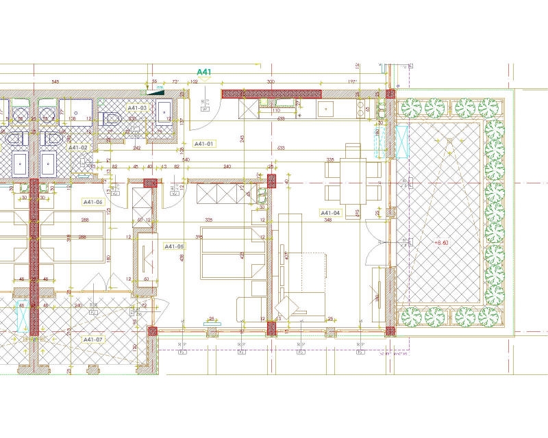 Комплексът предлага разнообразие от апартаменти и самостоятелни вили със собствена градина. Обзавеждането е издържано в класически или модерен стил, с луксозни и функционални мебели, по италиански дизайн.